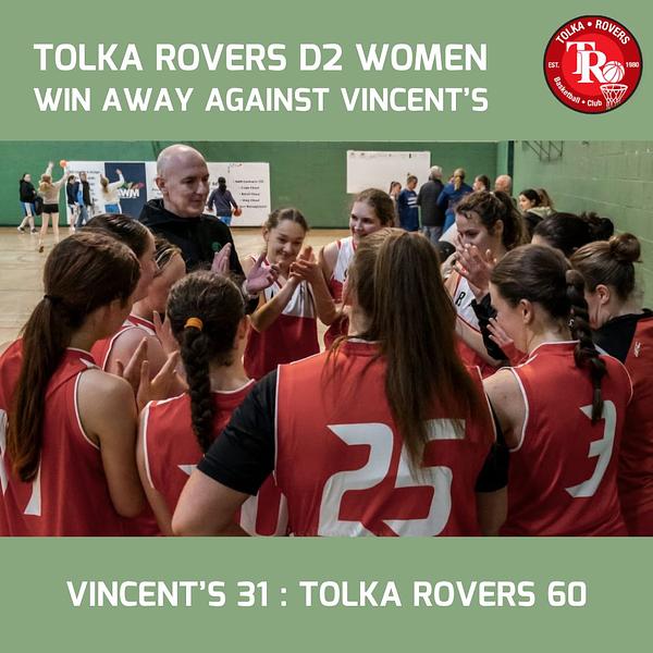 Our D2 Women had another league WIN away to St Vincent's BC