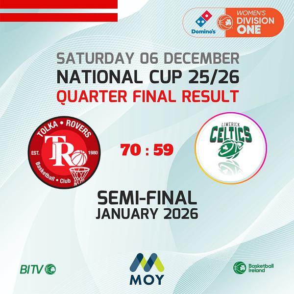 Our Women’s National League team had a big home win over Limerick Celtics on Saturday evening in the quarter-finals of the WNL Div 1 National Cup.