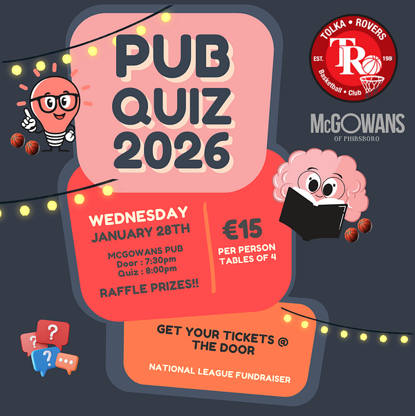 Our Annual Pub Quiz is going ahead on Wednesday, January 28th, at McGowans Phibsboro.