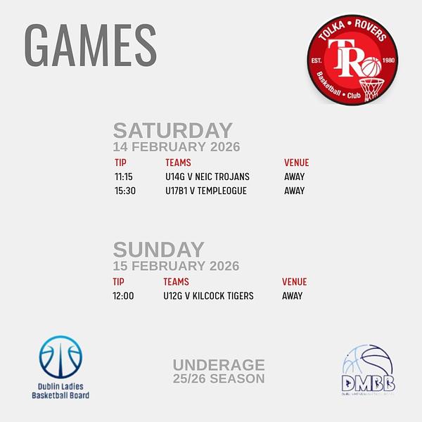 These are Underage games from across the Club for the weekend coming 14/15 February 2026