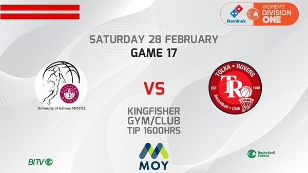 Our WNL penultimate GAME 17 is away to the University of Galway Mystics on Saturday, 28 February 2026, at Kingfisher Club Galway TIP 1600hrs. The teams met back in December at Tolka Rovers Sports Complex resulting in a 4 point win for our Women’s team.