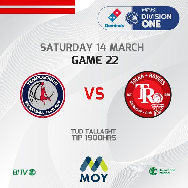 MNL Game 22 is the final game of the league season and it is away to Templeogue Basketball Club on Saturday next 14 March TIP 7.00pm at TUD Tallaght