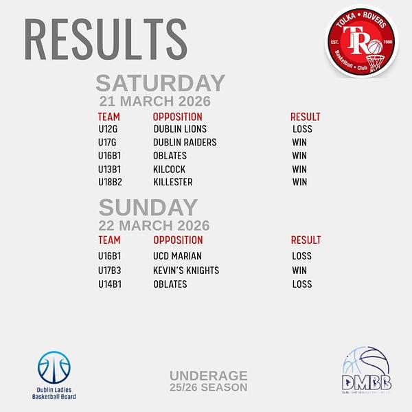 Underage results from across our Club over last weekend.