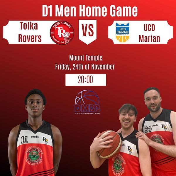 Our D1 Mens team are back home this Friday as they face UCD Marian at 8pm in Mount Temple!