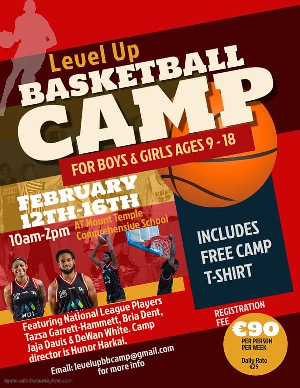 We are delighted to announce that our Level Up Basketball Camp is back this February Mid-Term. Come work on your game with the best in the business, Tazsa Garrett-Hammett, Bria Dent, Jaja Davis & DeWan White. Camp director is Hunor Harkai.