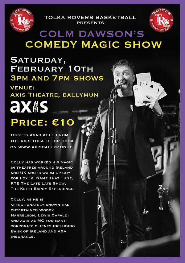 Join us on February 10th in the Axis Theatre, Ballymun for Colm Dawson’s Comedy Magic Show!