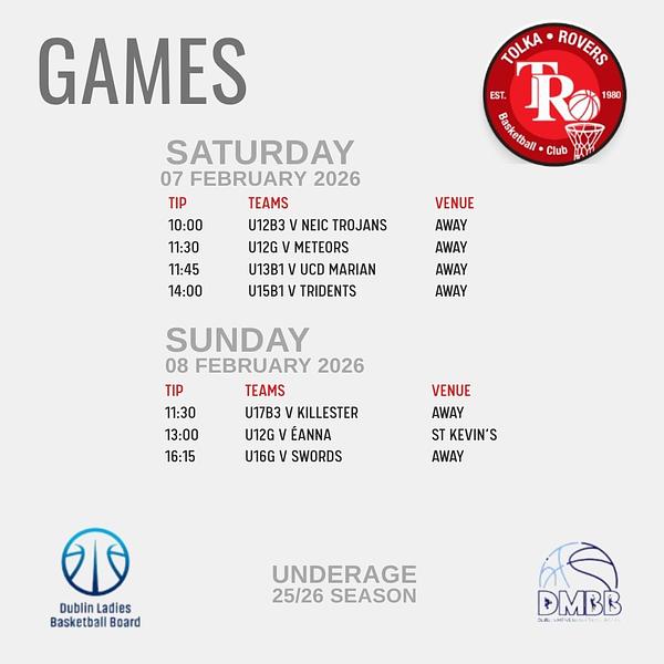 These are Underage games from across the Club for the weekend coming 07/08 February 2026